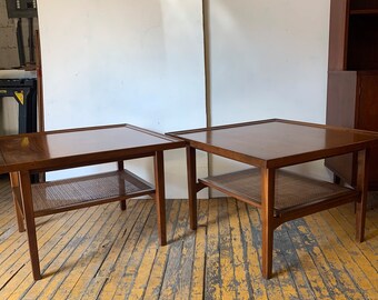 Drexel Drexel Heritage Furniture Pair Of Walnut End Tables From The Parallel Line For Drexel 1960s